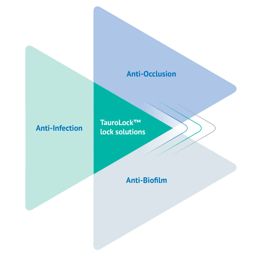 TauroLock™ products deliver Triple Efficacy, with Anti-Occlusion, Anti-Infection, and Anti-Biofilm features. Our products offer comprehensive protection against catheter-related complications by preventing blockages, eradicating biofilm, and reducing infection risk. Backed by decades of clinical research and studies, TauroLock™ products are innovative medical technology trusted by healthcare professionals committed to optimal patient outcomes through prioritising patient safety.